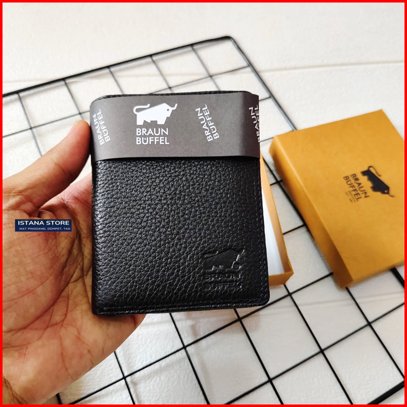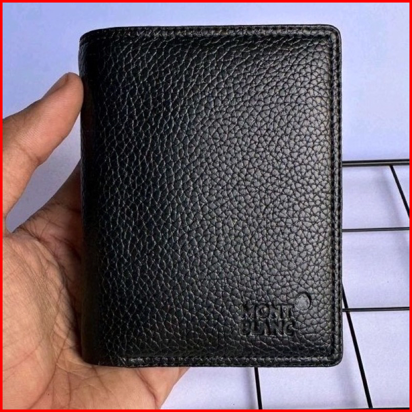 Dompet Pria Kulit Berdiri Asli Lipat Vertikal Mb Hitam Pekat