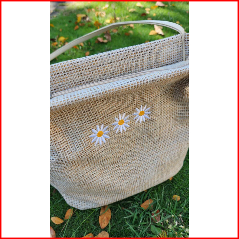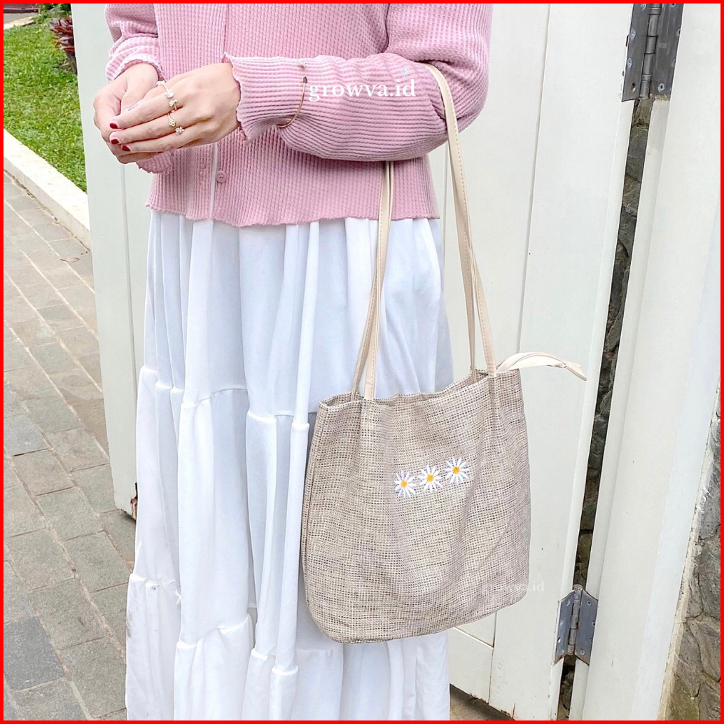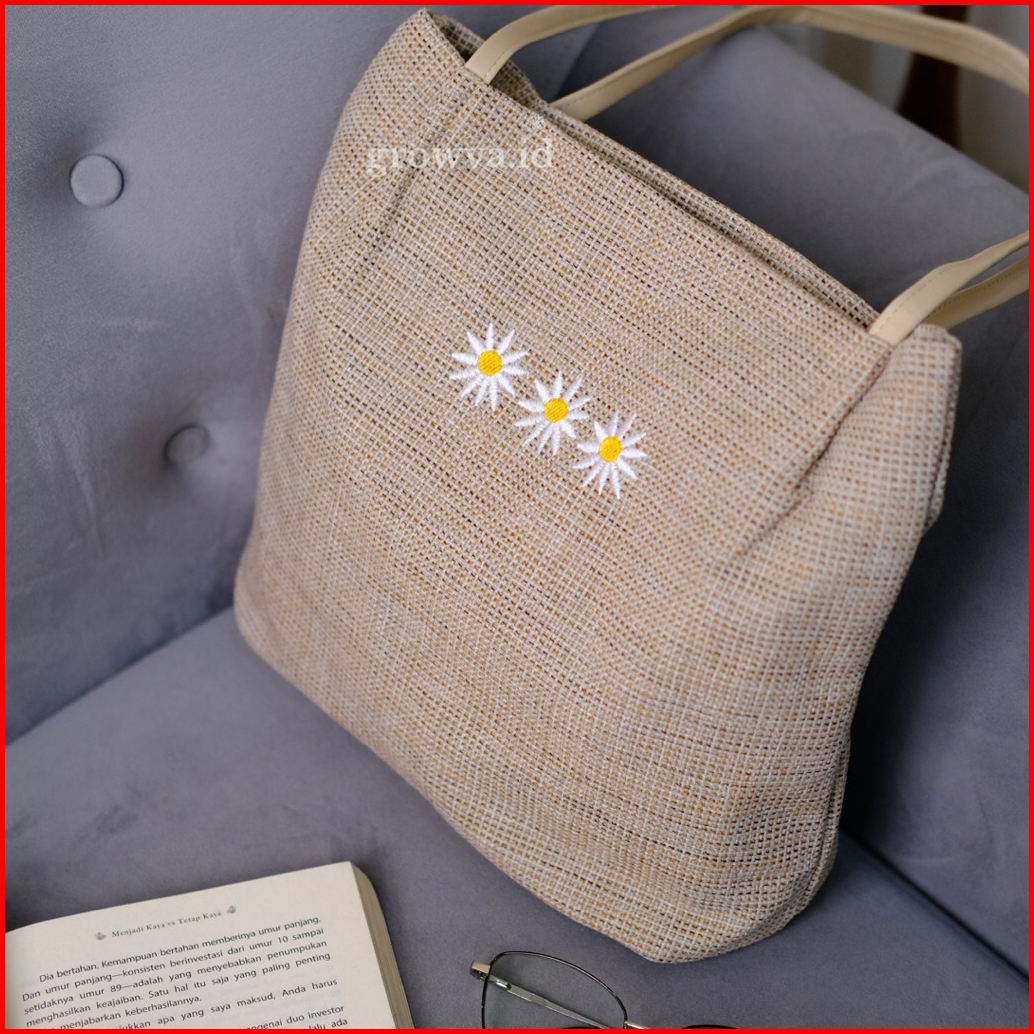 Totebag Daisy Bordir Tas Wanita Mini Tote Bag Kanvas Tali Kulit Sintetis Shoulder Bag Wanita Tas Bahu Korean Kekinian
