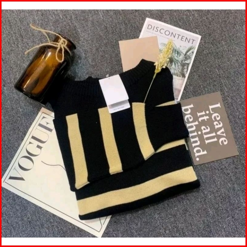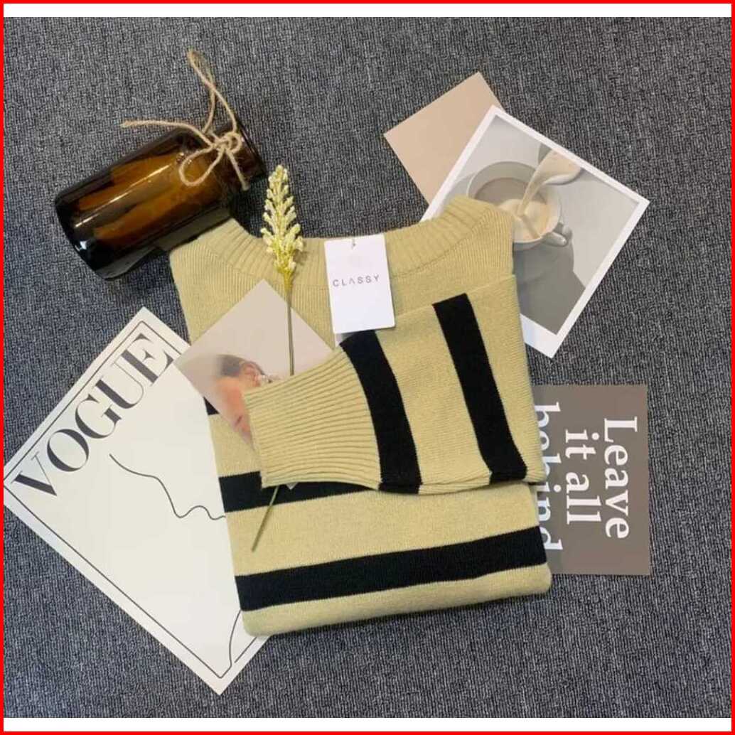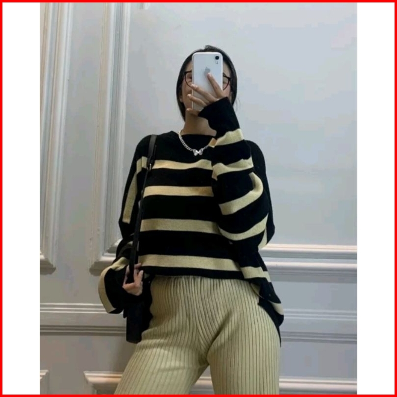 Sweater Rajut Garis Garis Knit Korean Style Atasan Rajut Oversize Top 1