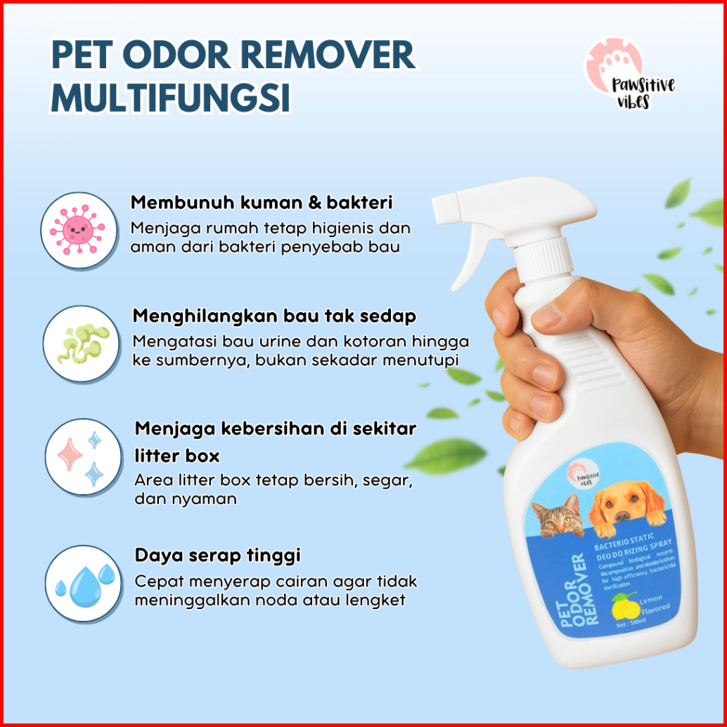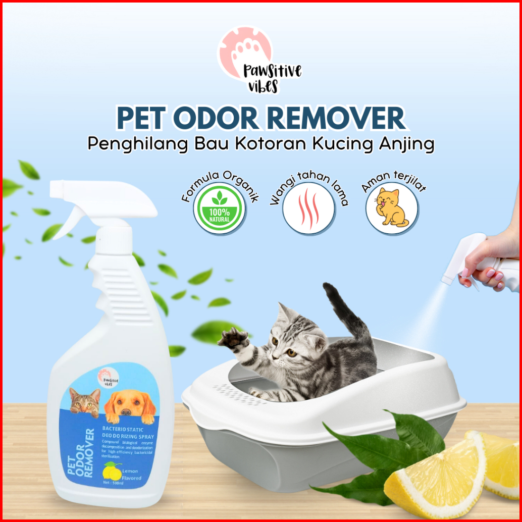 Penghilang Bau Kotoran Kucing Anjing Disinfectant Spray 500ml - Pawsitive Vibes Pet Odor Remover - Odor Spray For Dogs A