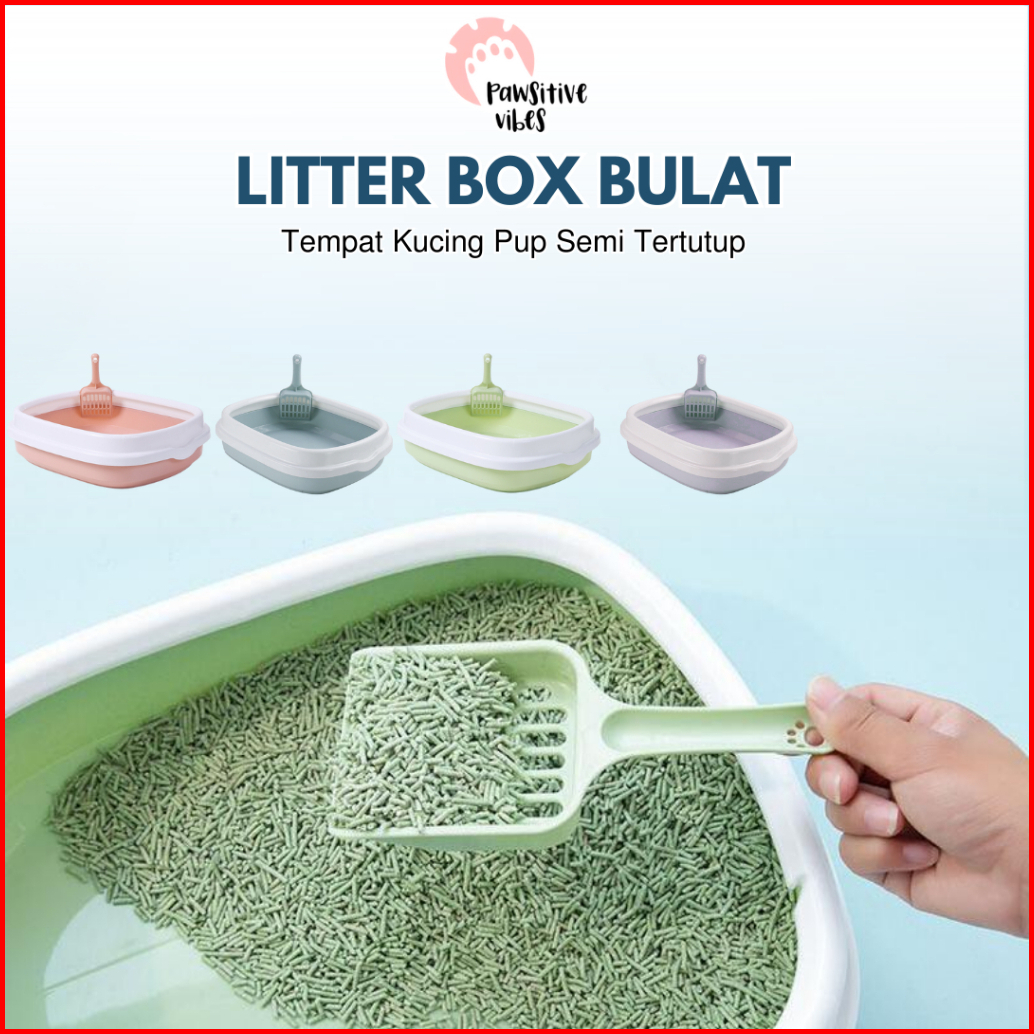 Litter Box Kucing Bulat - Bak Pasir Kucing Tempat Toilet Kucing - Kucing Free Sekop Serokan Pasir