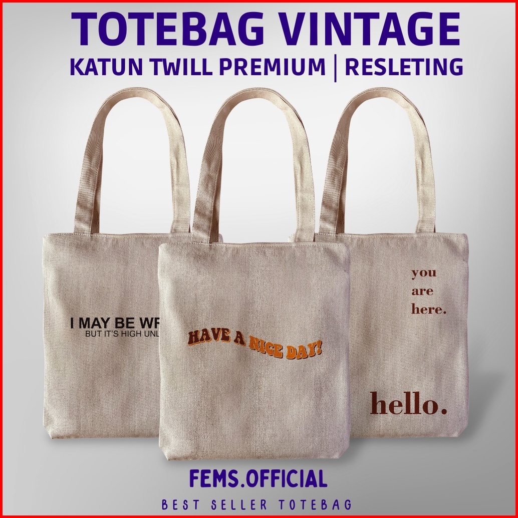 Tote Bag Aesthetic Kanvas Tebal Premium Serat Twill Totebag Quotes Resleting
