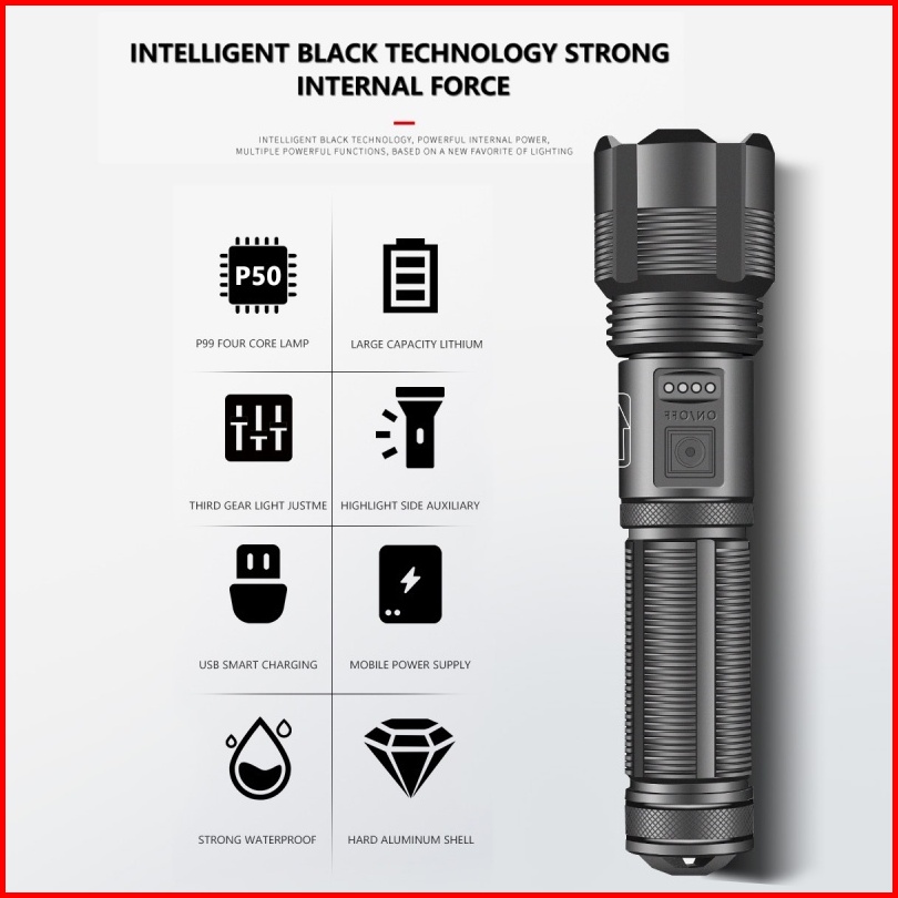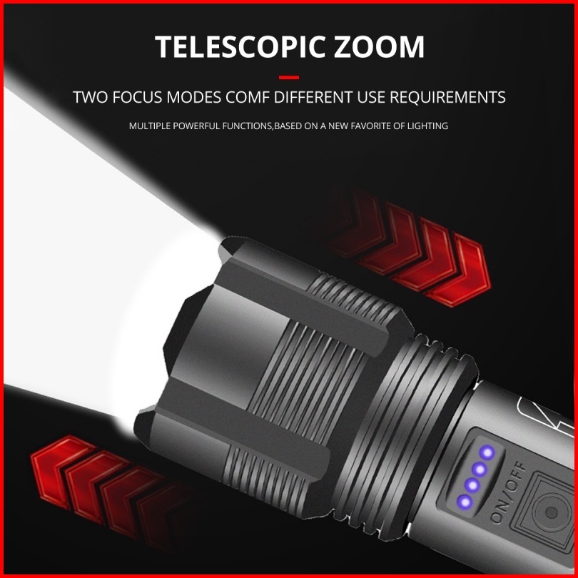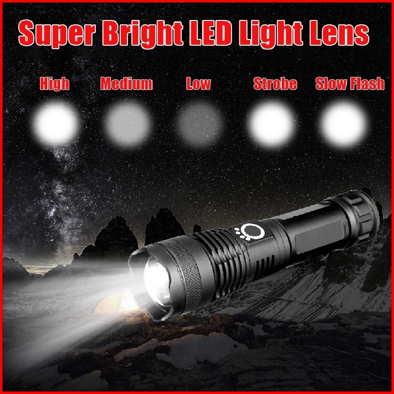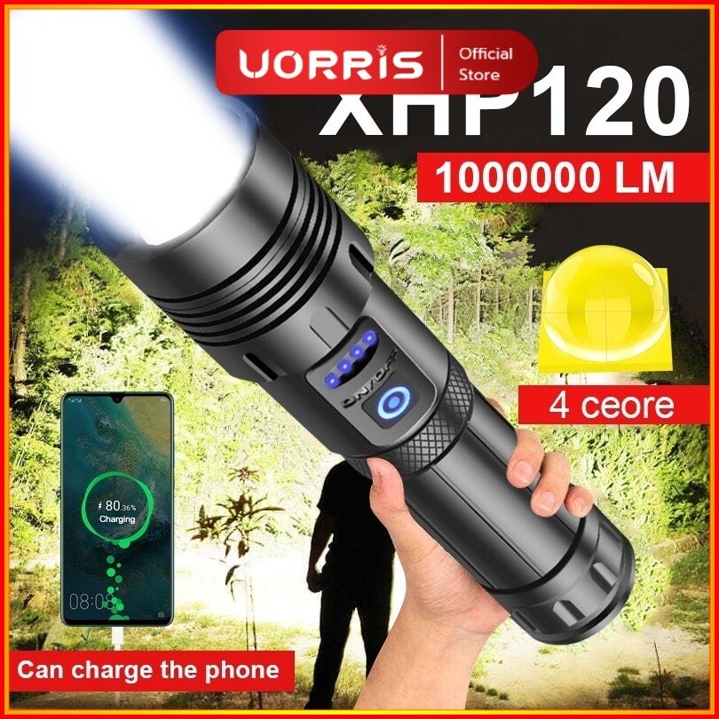 Senter Led Super Terang 100000 Lumens Flashlight Usb C Rechargeable Led Cob Senter Swat Taktis Cahaya Tahan Air Flashlig