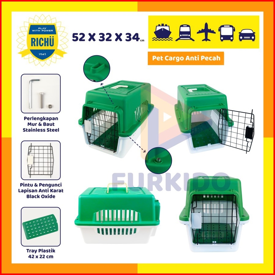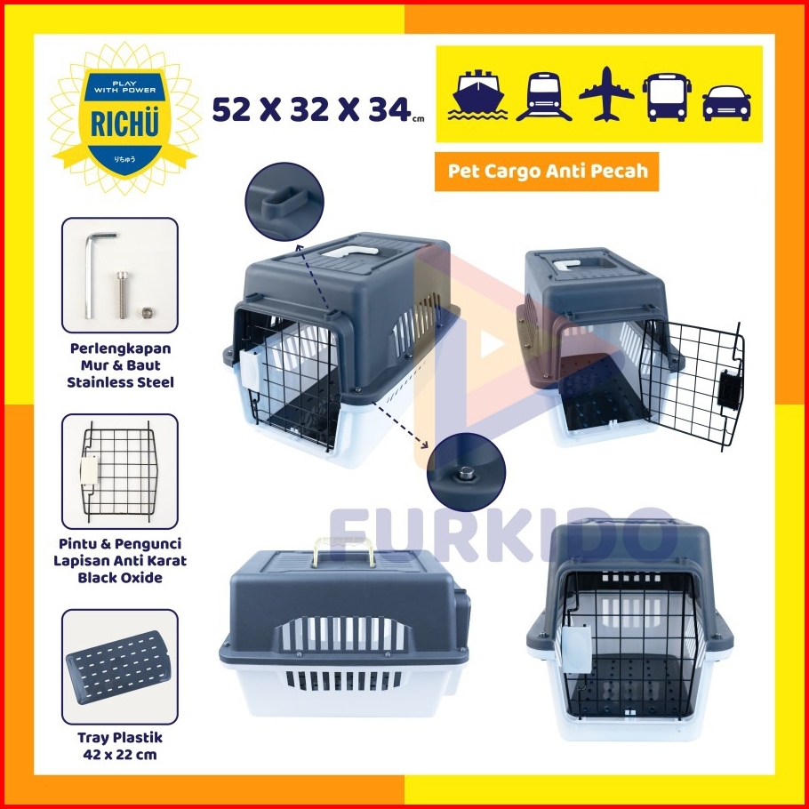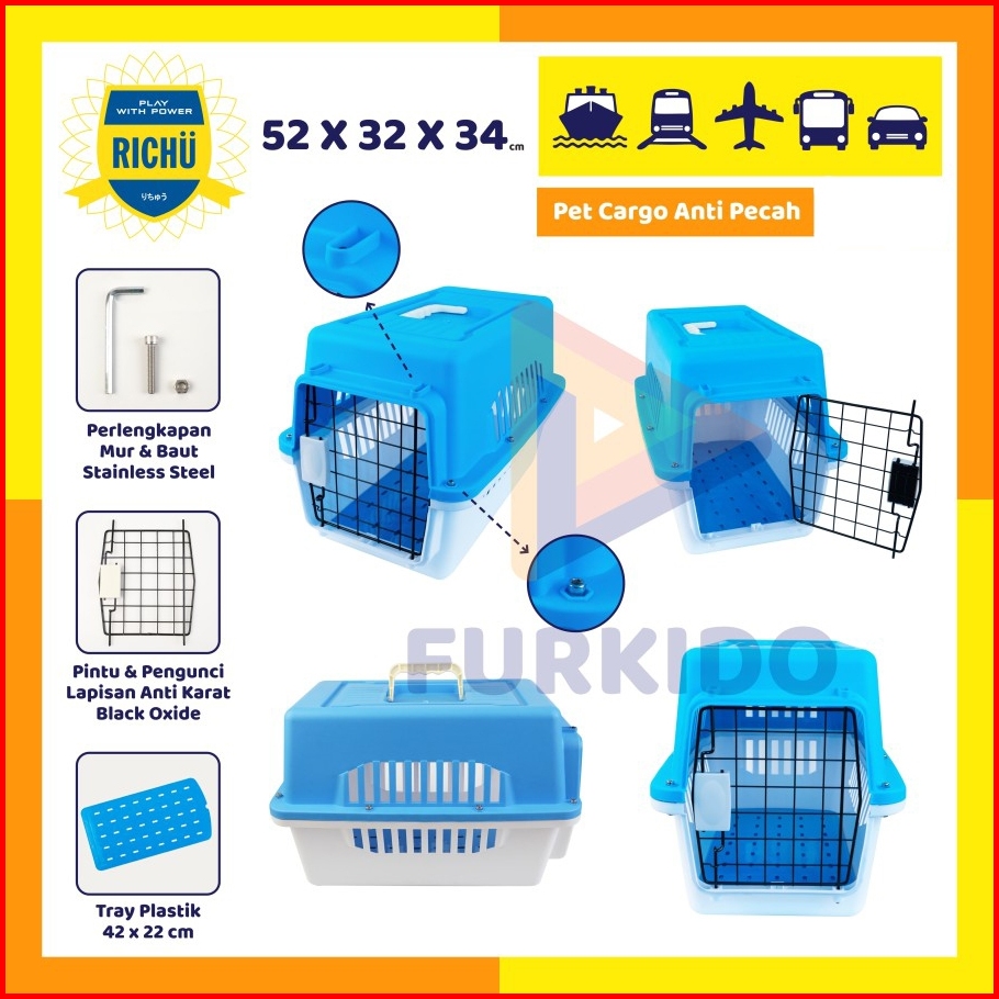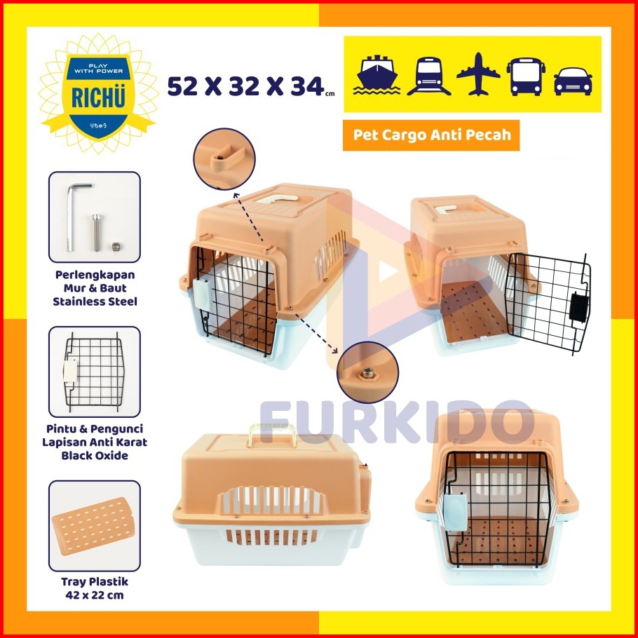 Richu Pet Cargo Carrier Kennel Box 52 X 32 X 34 Cm