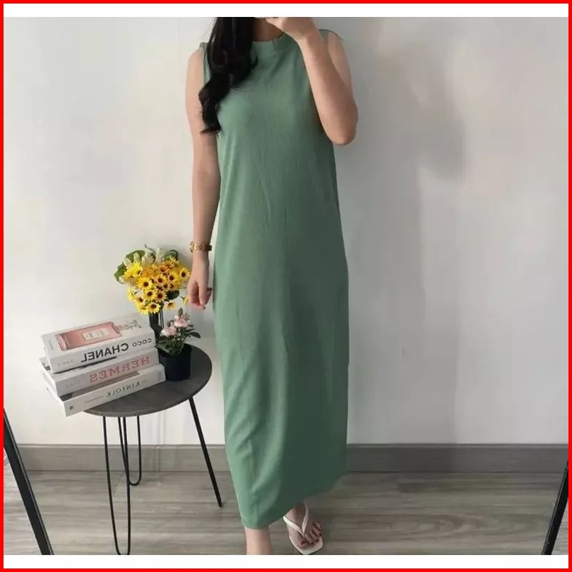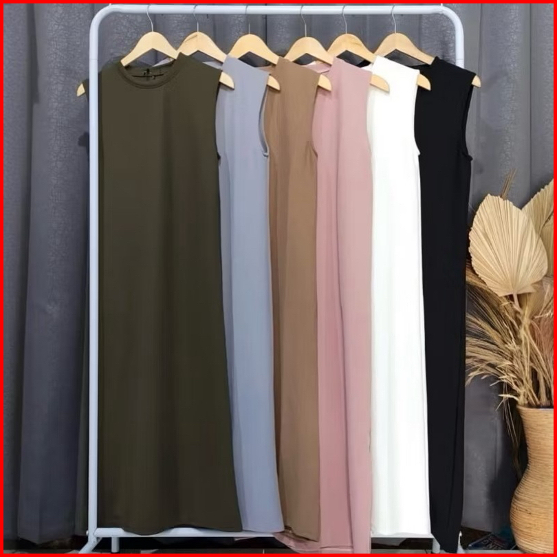 Inner Dress Outher Warna Pastel Dress Knit Manset Dress Tanpa Lengan