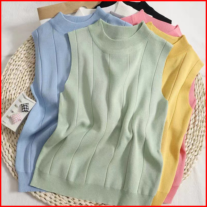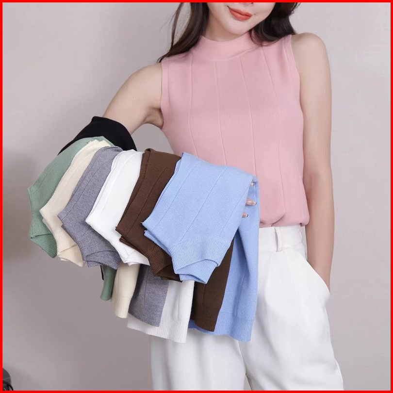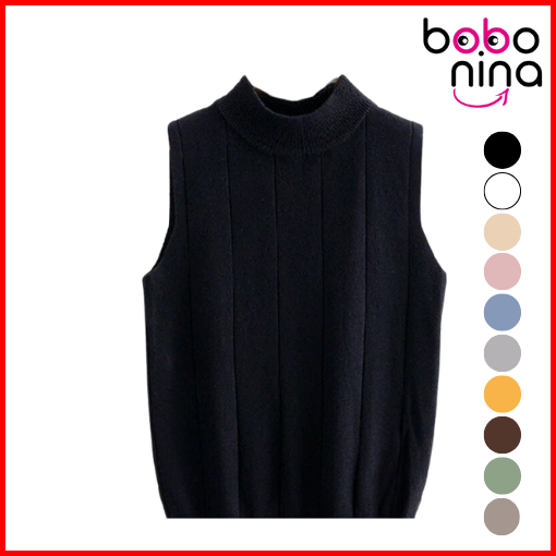 Ninabobo Sl024 Atasan Turtle Neck Sleeveless Lembut Knit Top Blouse Rajut Style Premium Inner Outer
