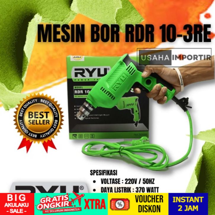 Mesin Bor RDR10-3RE RYU Mesin Bor Kayu Alat Pengebor Besi Kayu Aluminium Beton Tembok Bor Electric Mesin