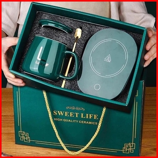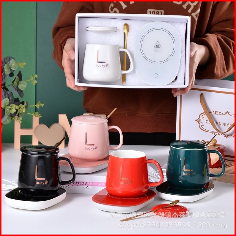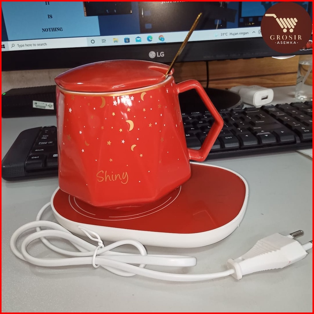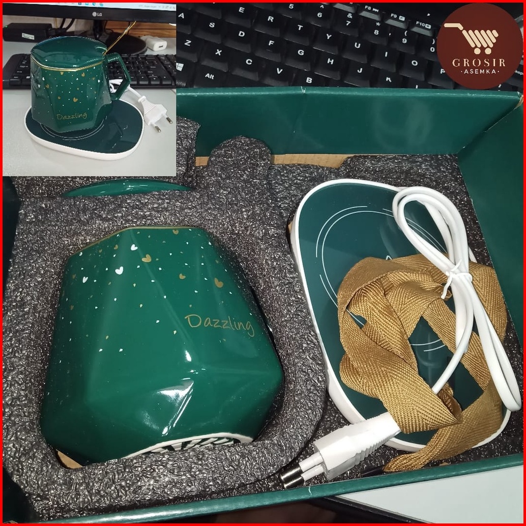 Gelas Set Keramik Mug Cangkir Gelas Listrik Pamanas Penghangat Minuman Kopi Susu Cup Coffee Warmer