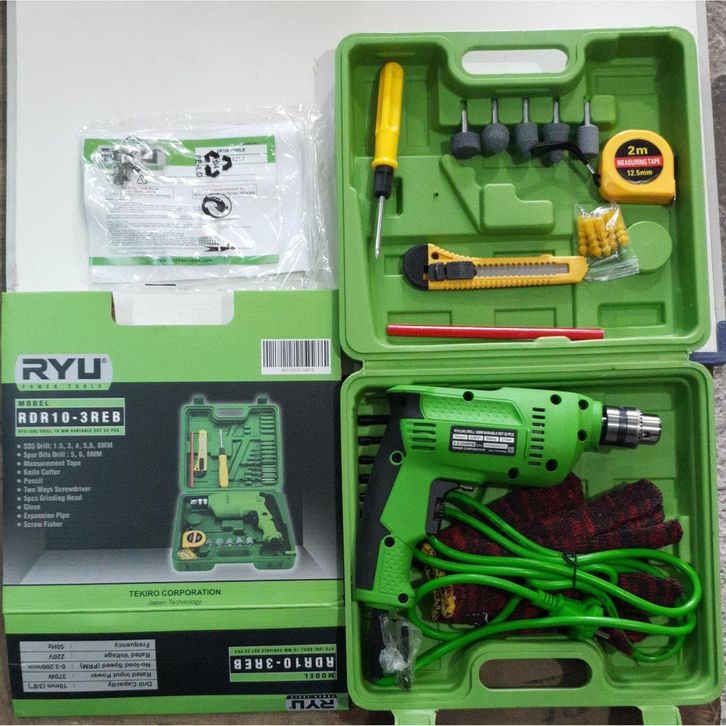 GARANSI RESMI ! RYU KOPER SET RID 10 REB 10 mm Mesin Bor Tangan Hand Drill Black Decker Besi Kayu 2 arah