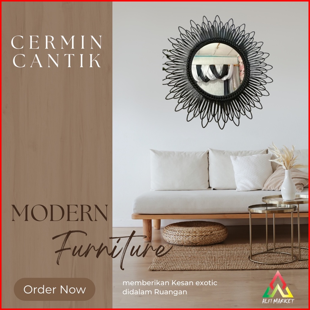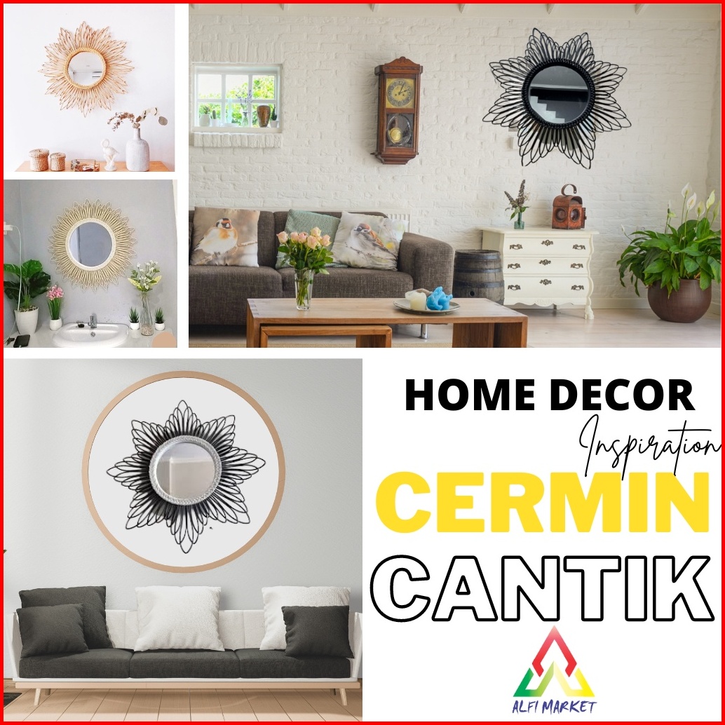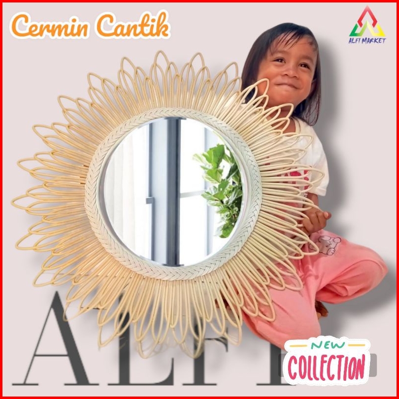 Kaca Rotan Cermin Cantik Aesthetic Mirror Cermin Hias Berwarna Hiasan Dinding Kaca Home Decor