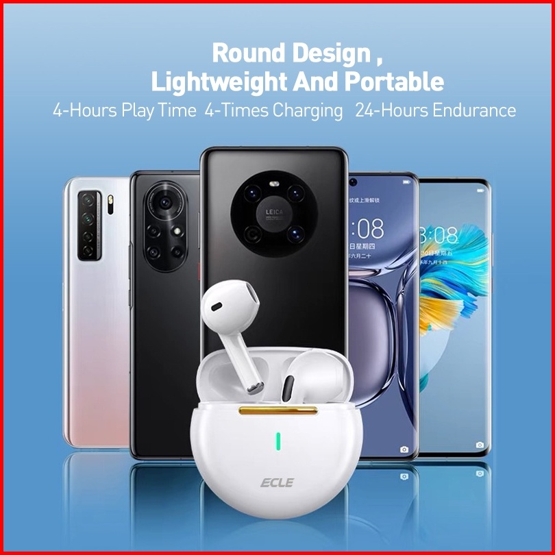 Hot Ecle Pro 6 Round Tws Earphone True Wireless Headset Bluetooth Earbuds Hifi Stereo Waterproof