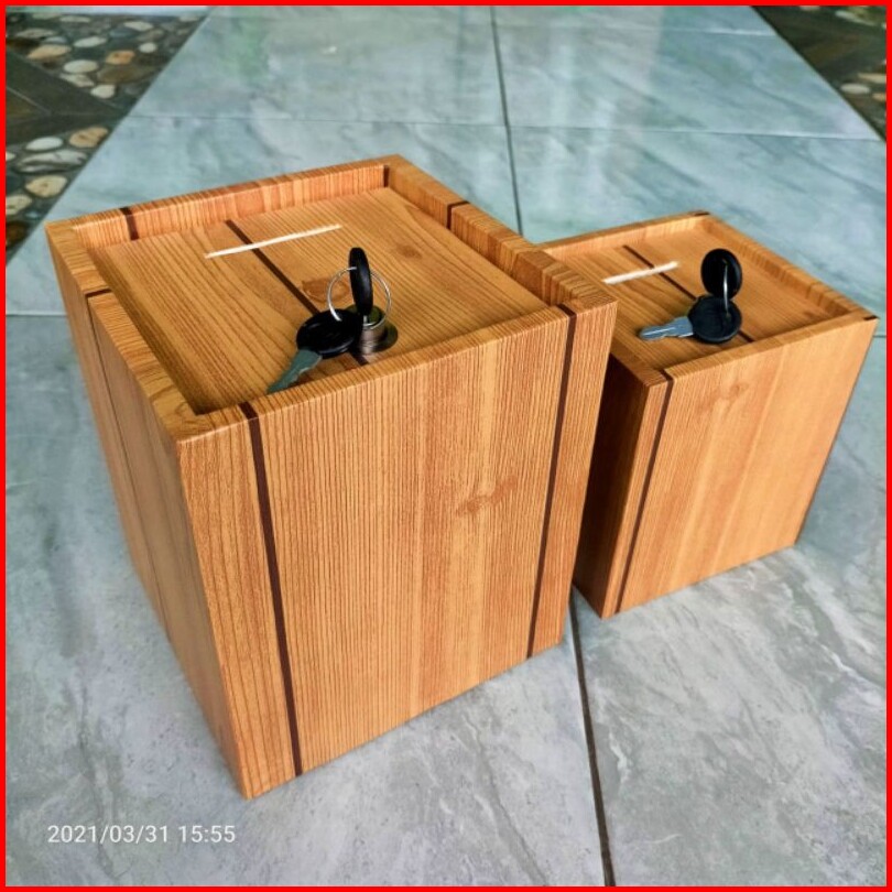 Celengan Unik Motif Kayu Jumbo Pakai Kunci - Celengan Karakter Motif Serat Kayu