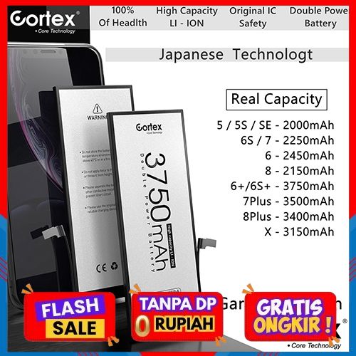 [Mall] Cortex Baterai iPhone High Capacity Original Battery Batre Baterai double Power 2 IC