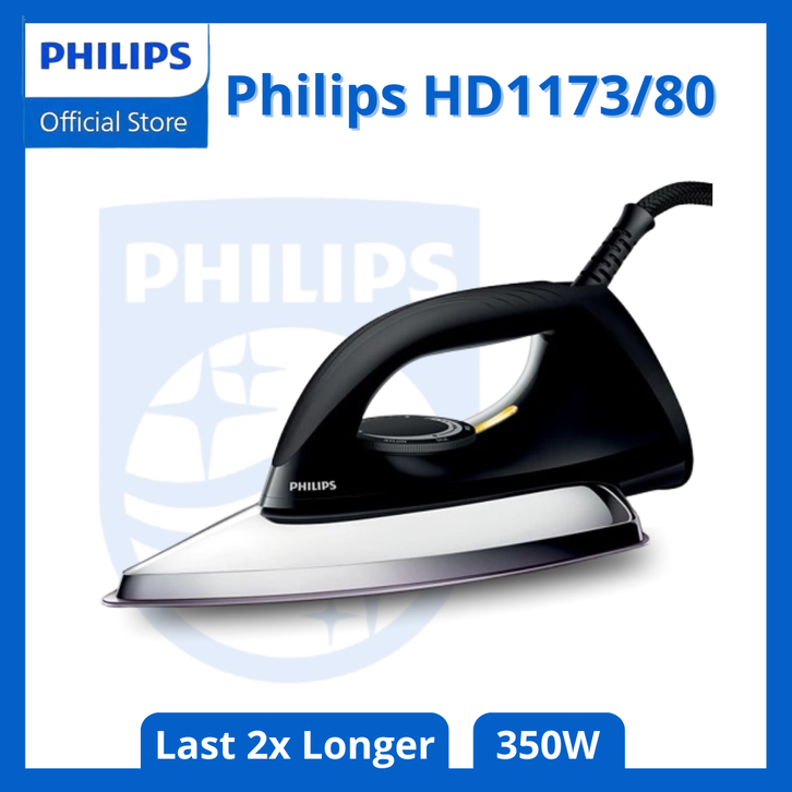Setrika Philips Original Setrikaan kering HD1173/80 Hitam Gosokan Philip Anti-Lengket Terbaik Ori - Official Store