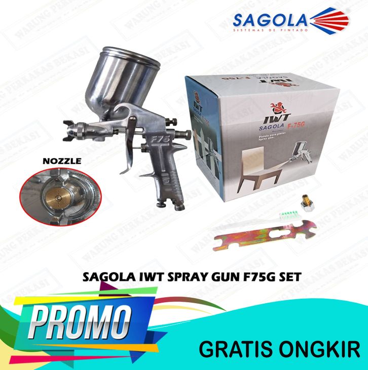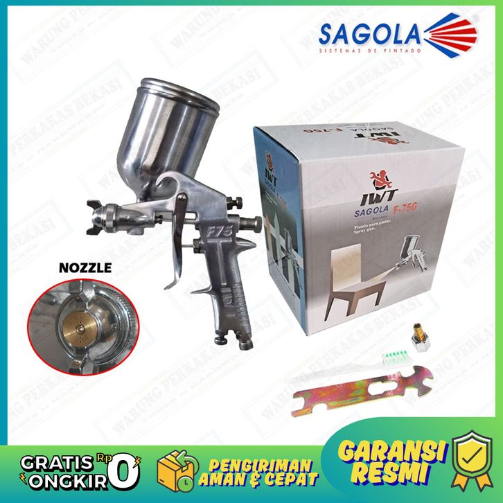 IWT SAGOLA - H&L F75 G Spray Gun Spet Alat Semprot Cat Angin Kompresor Tabung Atas Cup 400Cc Full Set