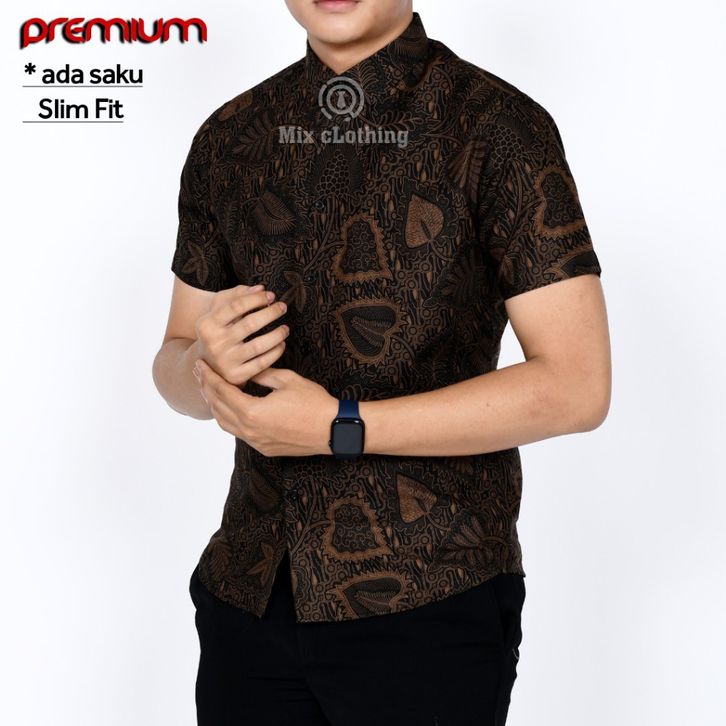 Baju Batik Pria Dewasa Kemeja Cowo Slimfit Lengan Pendek Fashion Baju Kondangan Formal Casual Katun High Quality