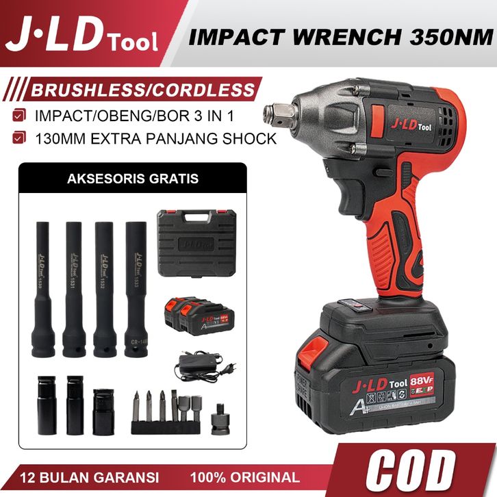 Cordless Impact Wrench JLD 88Vf 350n.M Impact Baterai Brushless Impact Murah Promo Impek Buka Baut Mobil