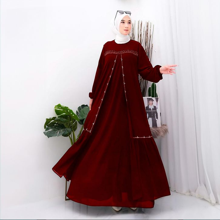 GAMIS LEBARAN 2026 GAMIS KONDANGAN MEWAH ELEGANT ZASKIA DRESS BAHAN CERUTY BABYDOLL MIX SWAROSKI BAJU LEBARAN KEKINIAN
