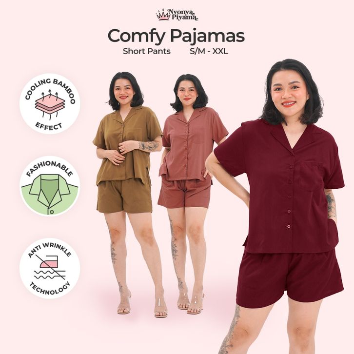 BEST SELLER Nyonya Piyama Poly Bamboo Set Celana Pendek Polos Comfy Vol 1