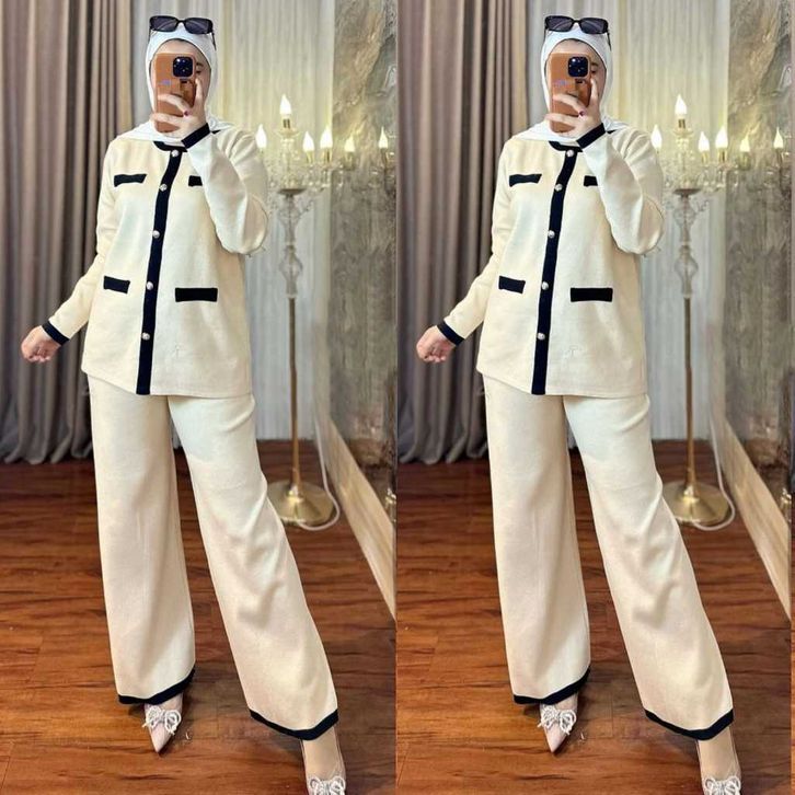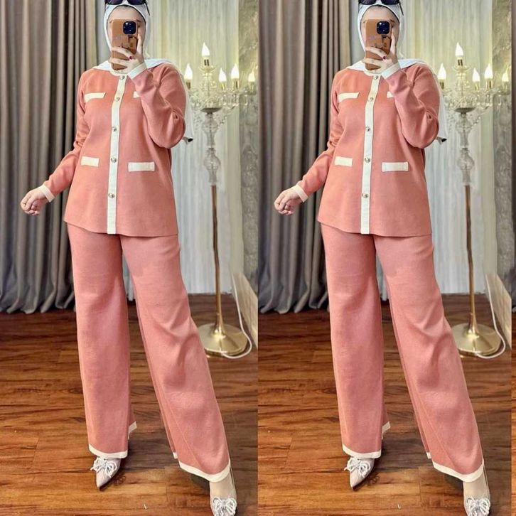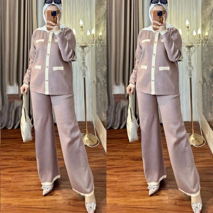Femes Qiana One Set 2in1 Setelan Wanita Muslim Matt Caramel Knit Polos Basic Premium OOTD Korean Style