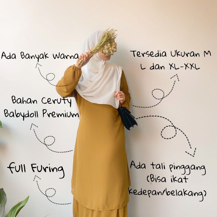 Abu muda, Abu tua, Army, Burgundy, Coksu, Denim, Dusty Pink, Hijau botol, Hitam, Kunyit, Land (Coklat Tua), Lilac, Lime (Lemon), Maroon, Milo, Mocca, Navy, Olive, Pink Coral, Putih Bersih, Putih tulang, Random Warna, Rose taupe, Sage Green, Salem, Teracota, Wardah