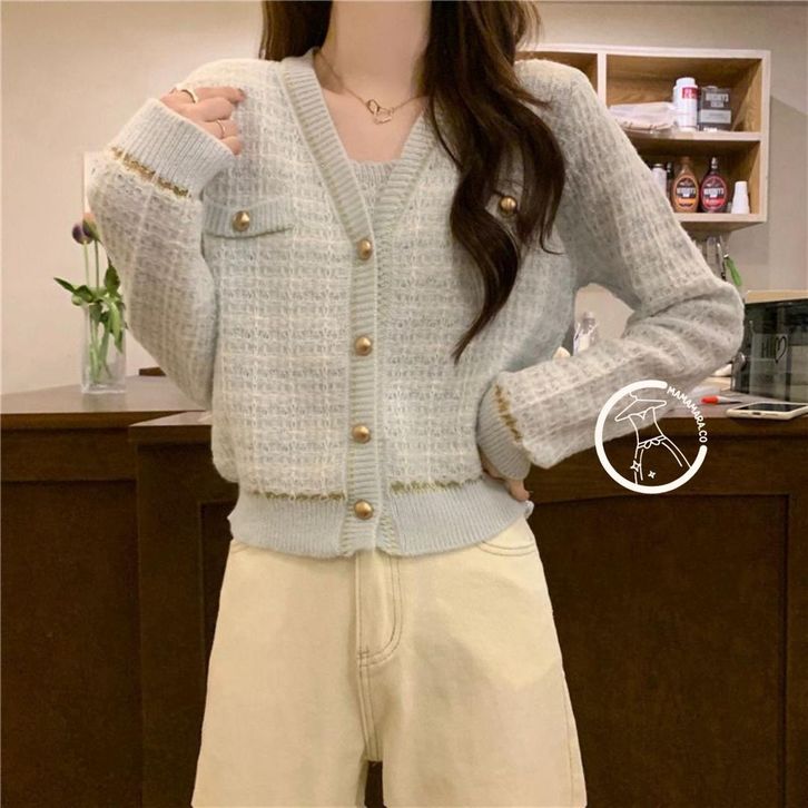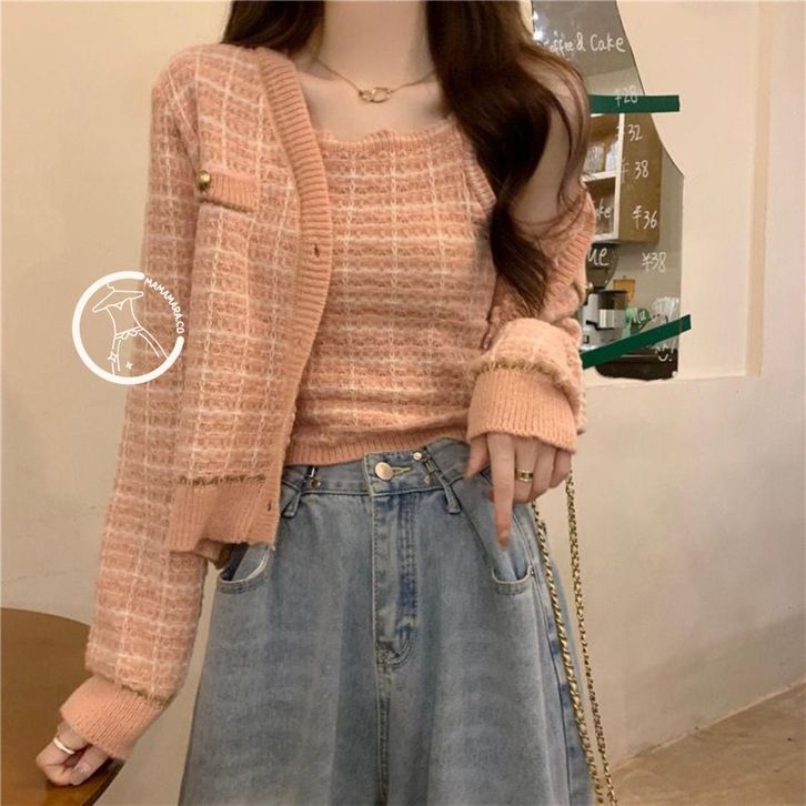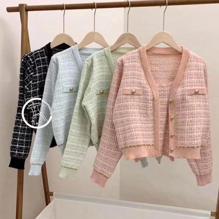 MAMAMARA - Cardigan Wanita Pastel One Set Korean Style Sweater Rajut Knitwear Outer