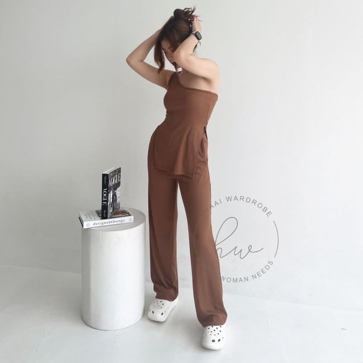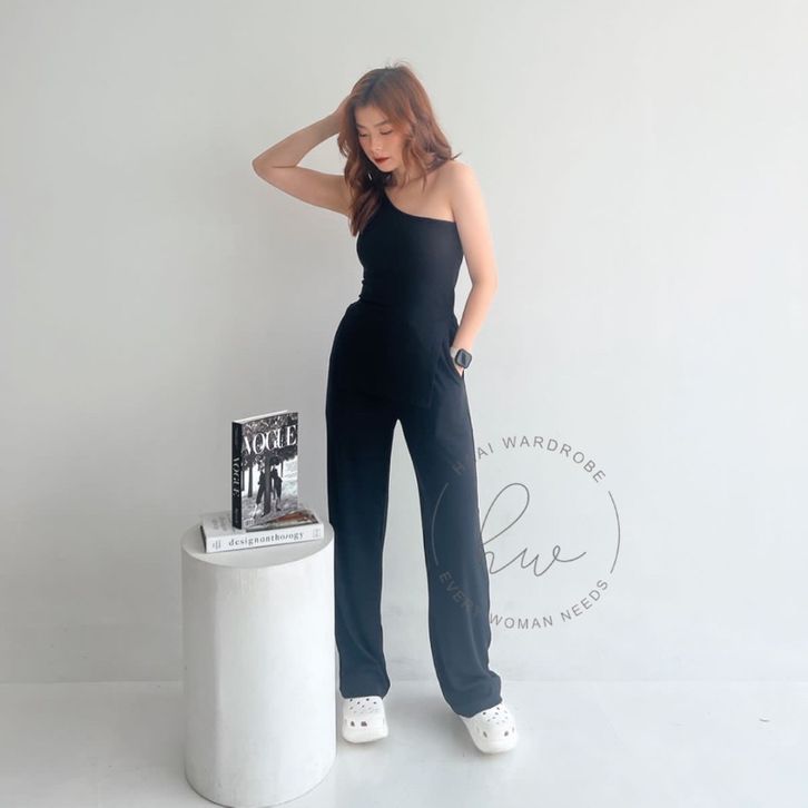 HW - Arla Set - 104 - Setelan Baju Celana Set Tanktop Celana Panjang One Shoulder Tarzan Top