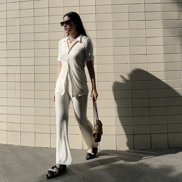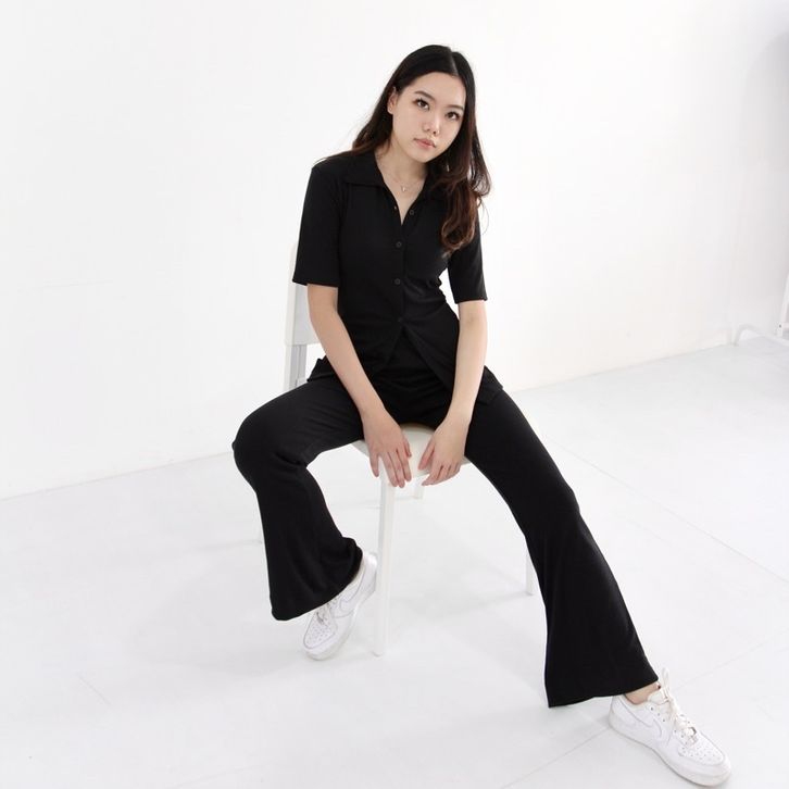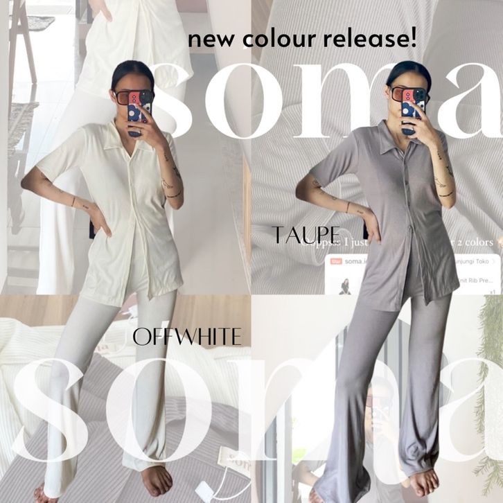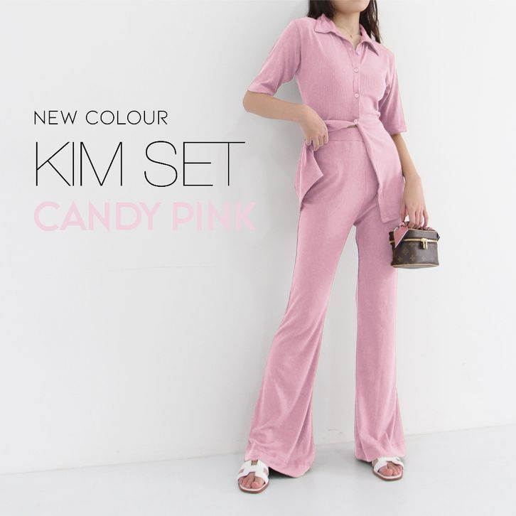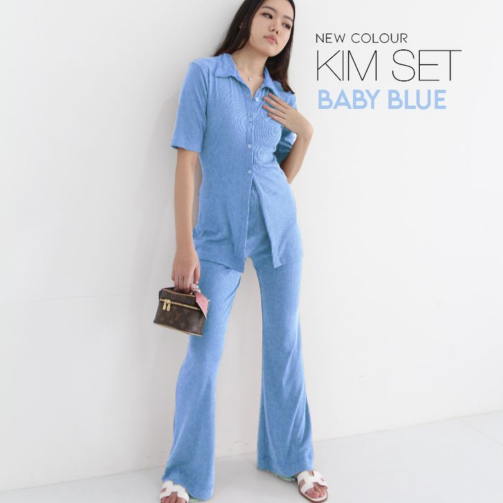 KIM SET | Setelan Wanita Oneset Knit Rib Premium Shirt Pants Baju Set Celana Highwaist Soma