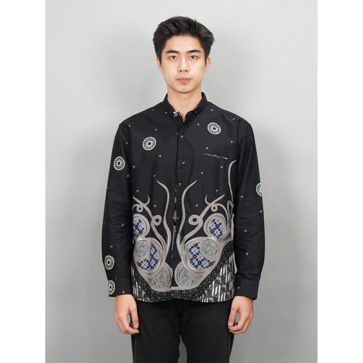 Swipe Up Kemeja Batik Pria Modern Jumbo Lengan Panjang Night