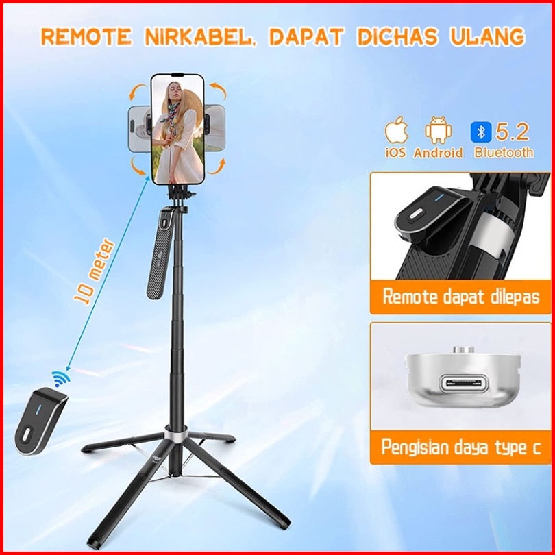 Mipanda P180 Tongsis Tripod 180cm Bluetooth Selfie Stick Remote Tripod Hp Baut 1 4 Tongsis Untuk Gopro Kamera Lampu Ring