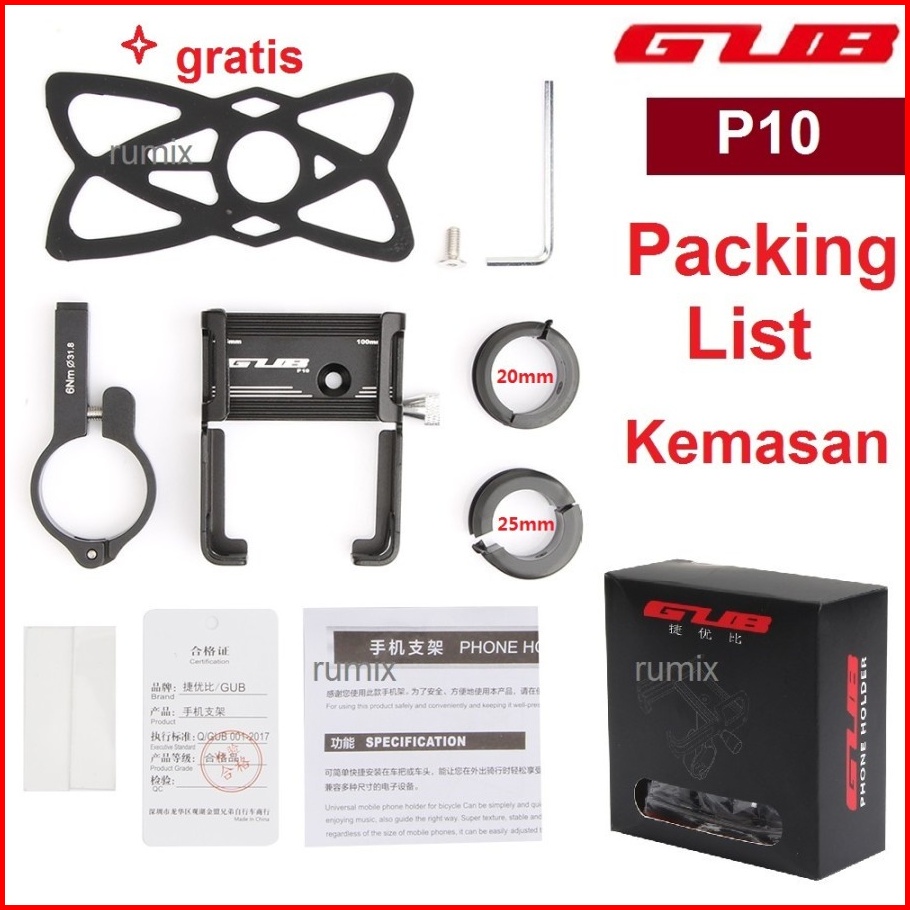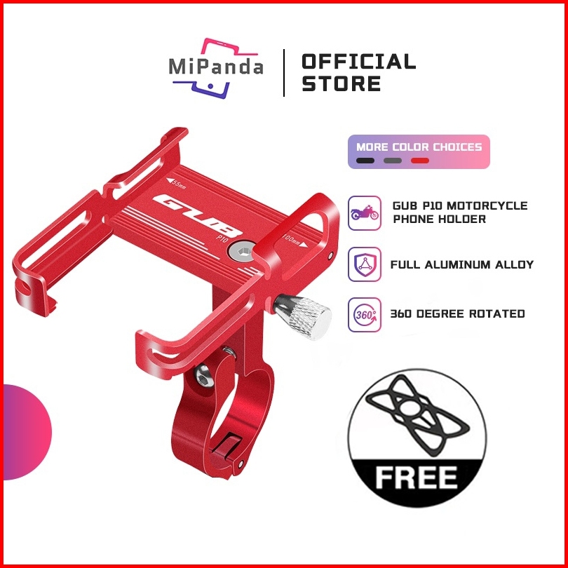 Mipanda Gub P10 Original Holder Hp Dudukan Ponsel Alumunium Aloy Holder Hp Sepeda Motor Stang Spion Dudukan Handphone Di