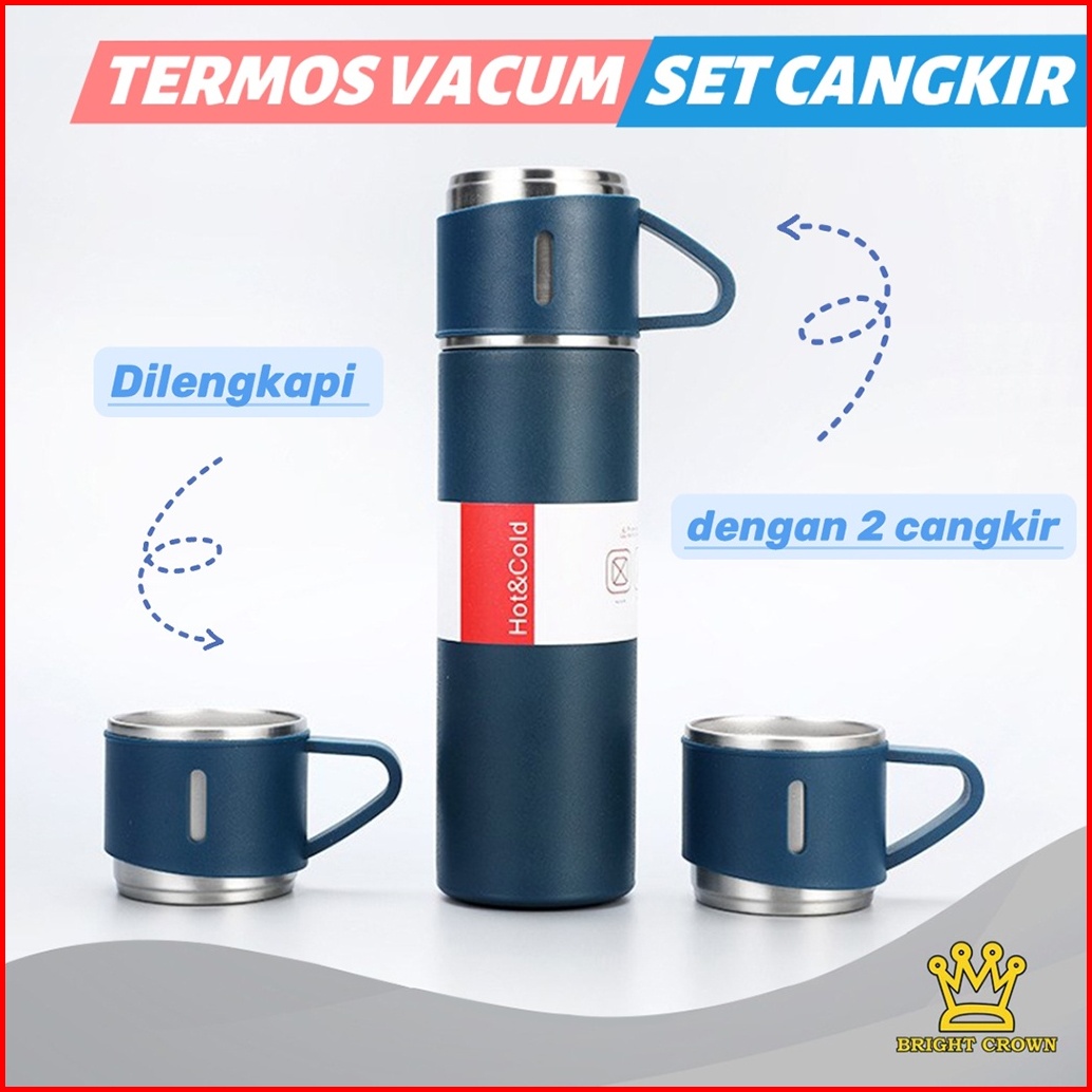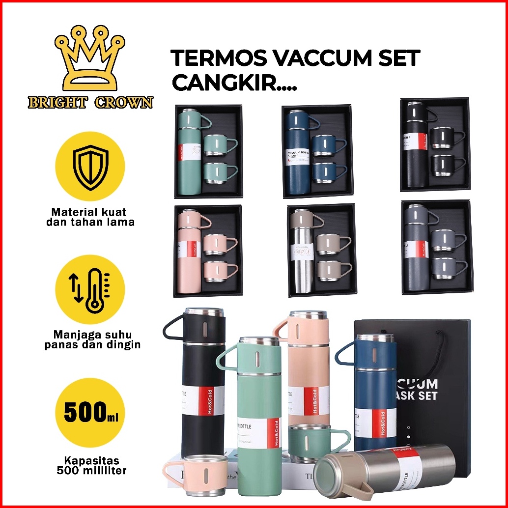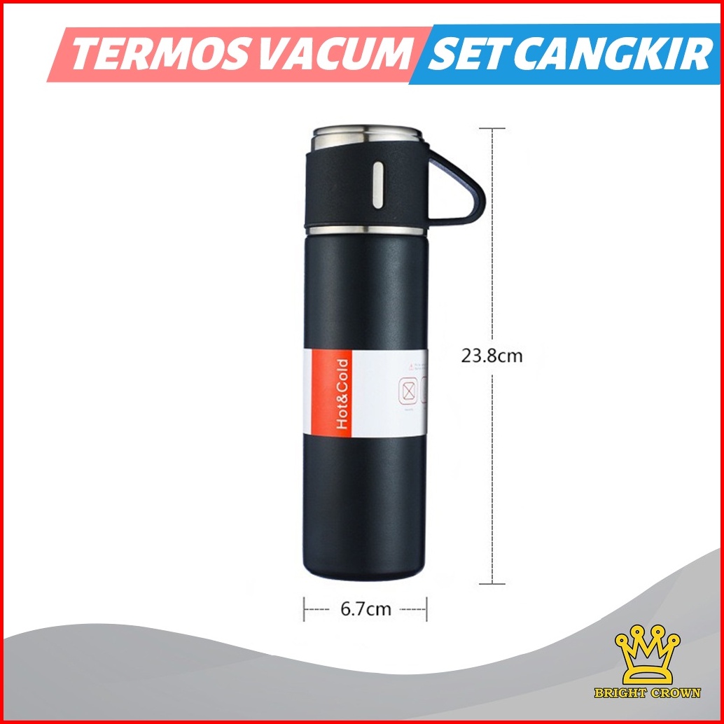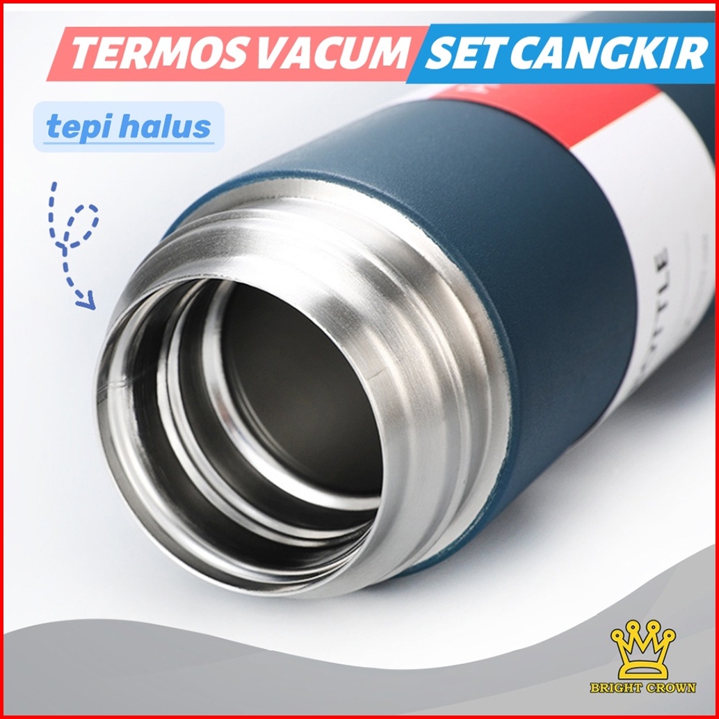 Bright Crown Termos Vacuum Flask Gift Hampers Free Cangkir Botol Minum 500ml Panas Dingin Import