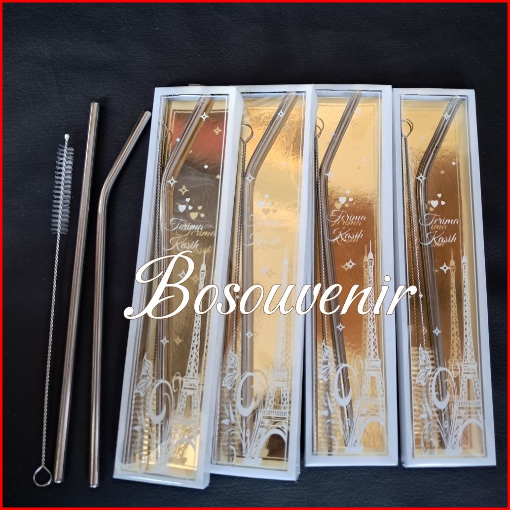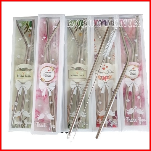 Sedotan Stainless 3in1 Kemas Mika Souvenir Pernikahan
