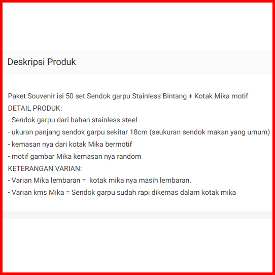 Isi 50 Set Sendok Garpu Bintang Mika Motif Souvenir Pernikahan