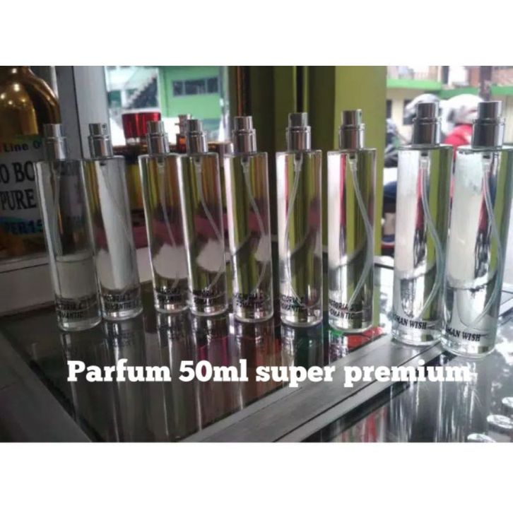 212 Man, Aigner Blue, Angel Heart, Annasui Dolly, Avril Lavigne, B. Omnia Crystal, Baccarat, Black Opium, Buble gume, Bulgari Aqua, Burberry Lady, Chanel Coco m, Cherry Blossom, Dav1dof Lady, Dior Sauvage, Escada Moon s, Escada Sexy g, Federico Mahora, Forever Night, Gucci Bloom, Guess yellow A, Harajuku Love, Hugo Boss Energize, Incanto Shine, Jaguar Vision, Ken z0 Batang, Lovely, Lux, M. Dior Booming, Nagita s, Olla Ramlan, One Million Lucky, Paris Heires, Paris Hilton ld, Pink Ciffon Dbs, Pramugari, Rafi Ahmad, Request Wangi Lain, Selena Gomez, Taylor Swift, Vanilla Bds, Vanilla Cake, Vanilla Latce, Victoria Romantic, Victoria Scandalous, Vip Man, Xs Black, YSL libre, Zara Man, Zara Orchid, Zara Wonder Rose