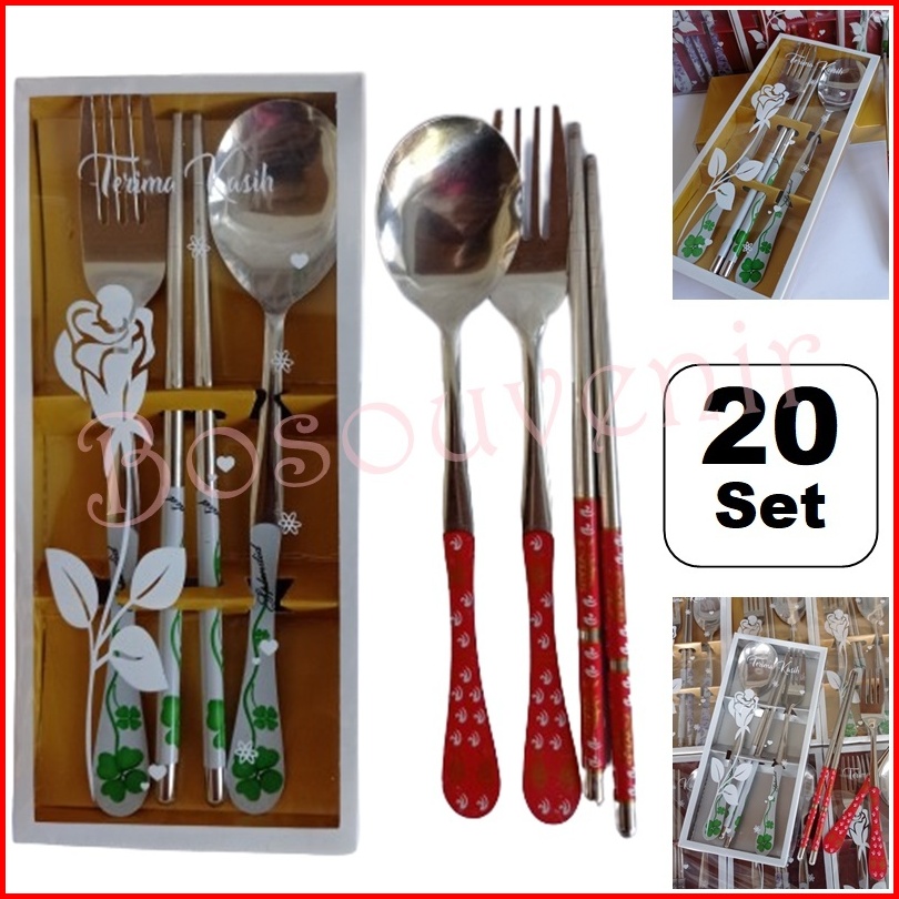 Isi 20 Set Sgs Sakura Kemas Box Mika Souvenir Pernikahan Sendok Garpu Sumpit Sakura