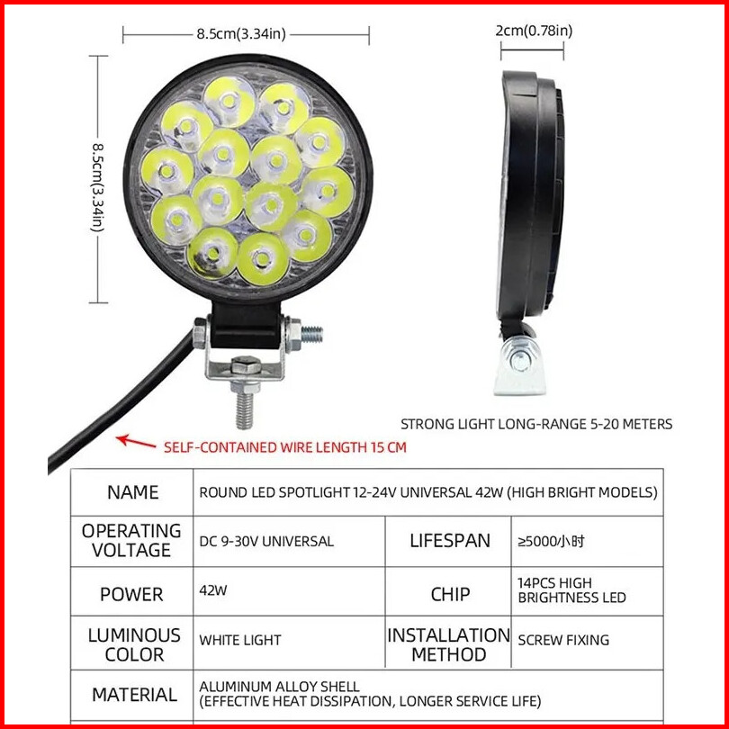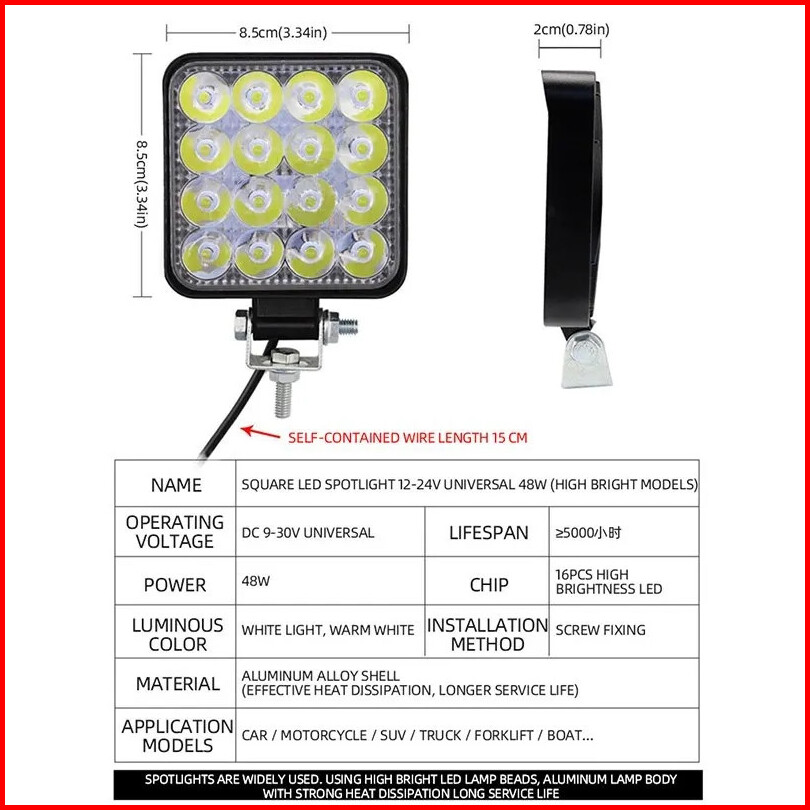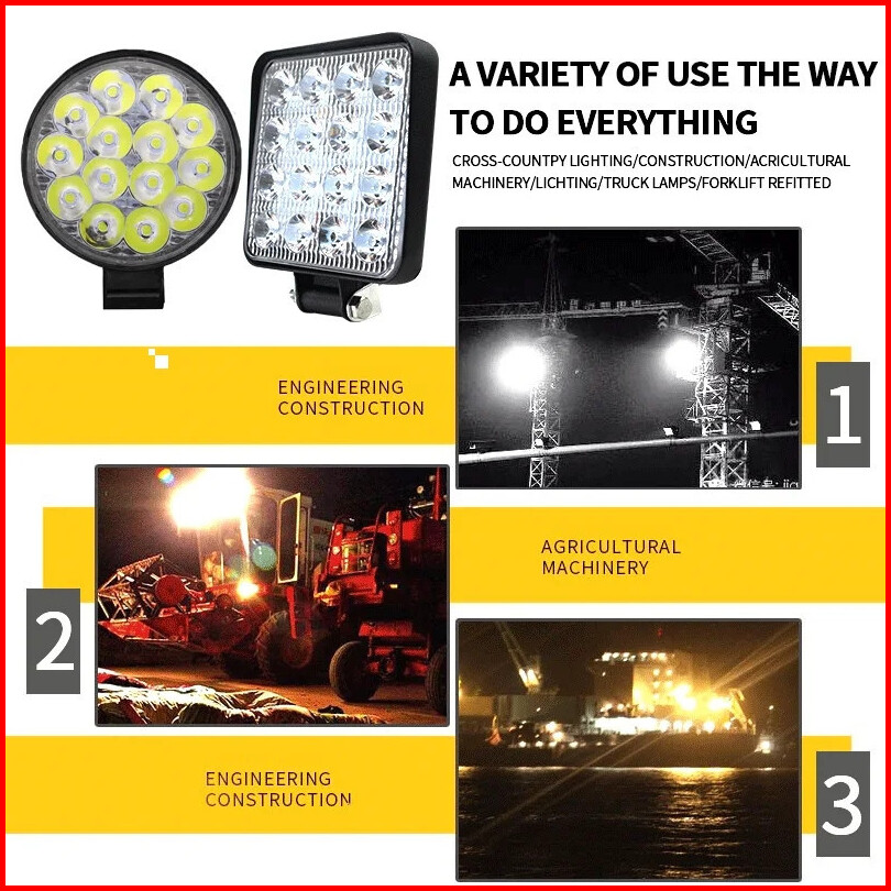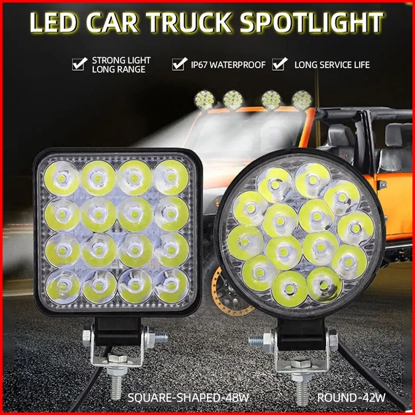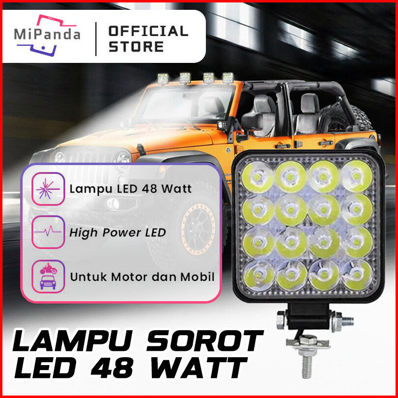 Mipanda Lampu Led Sorot Tembak Worklight Mobil Motor 48 Watt 16 Titik Mata 48watt Offroad 48w W48 12 - 24 V Lampu Kabut