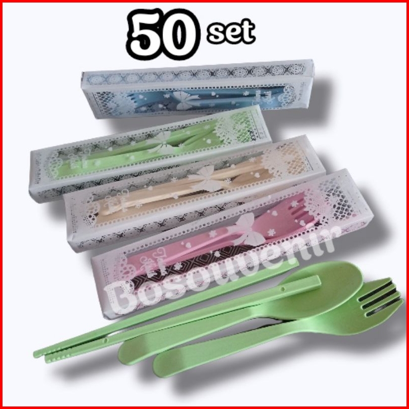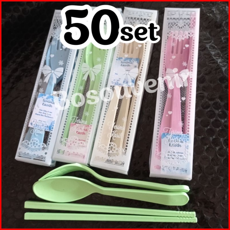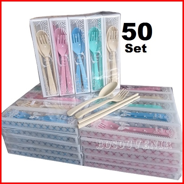 Souvenir Pernikahan Isi 50 Set Sendok Travel Lokal Di Kemas Mika