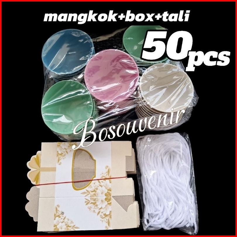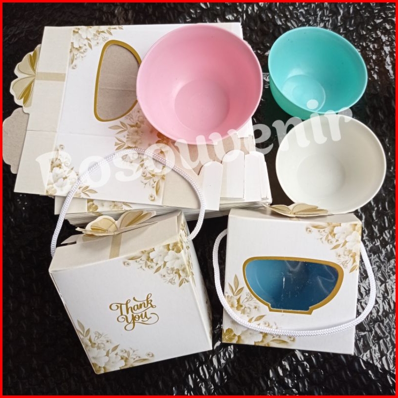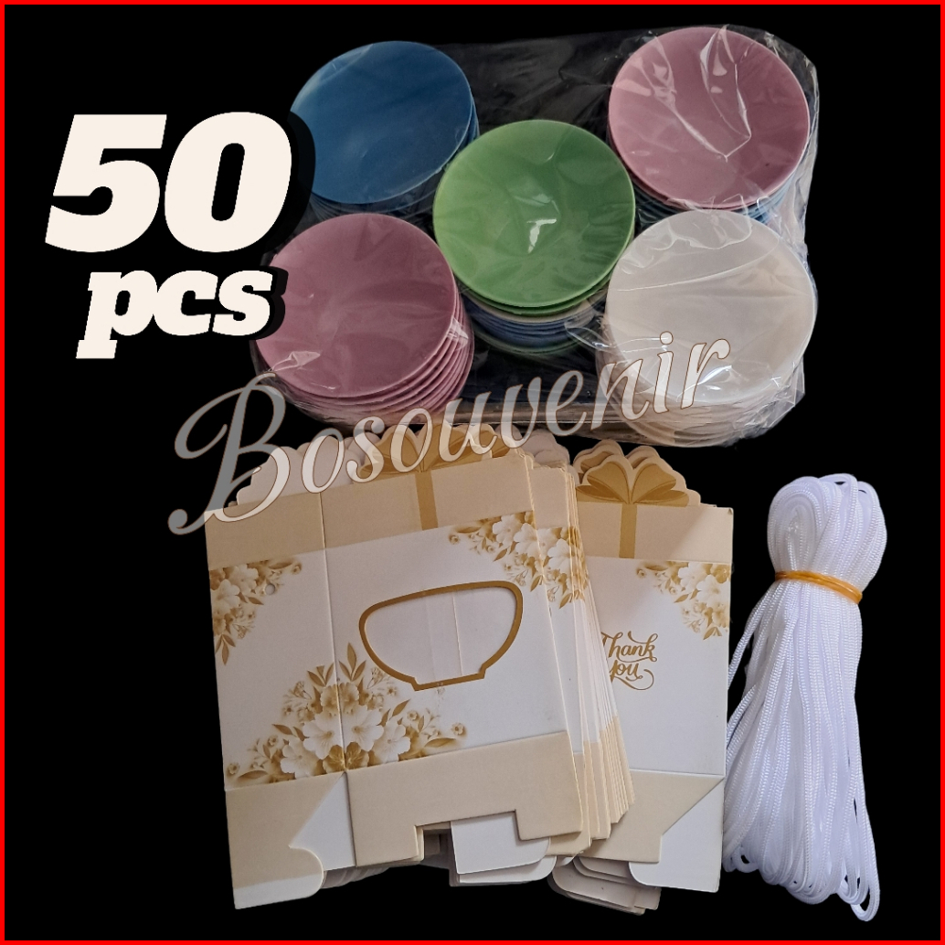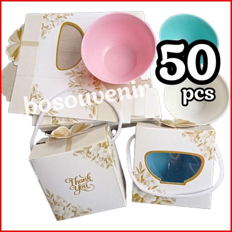Isi 50 Souvenir Mangkok Plastik Bulat Box Motif
