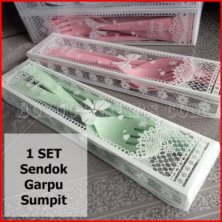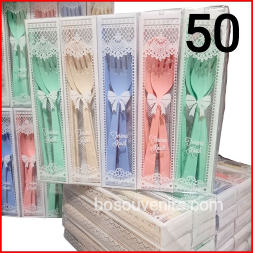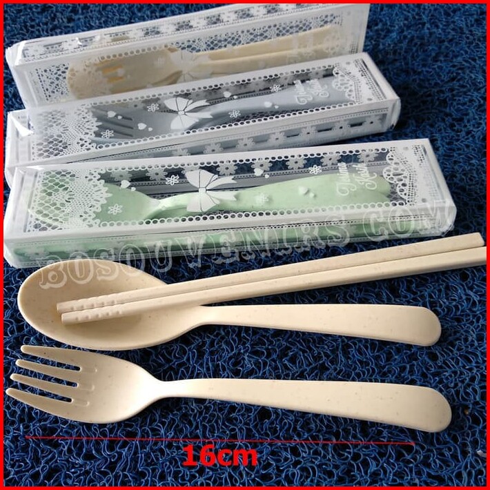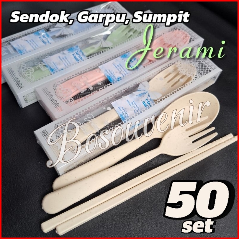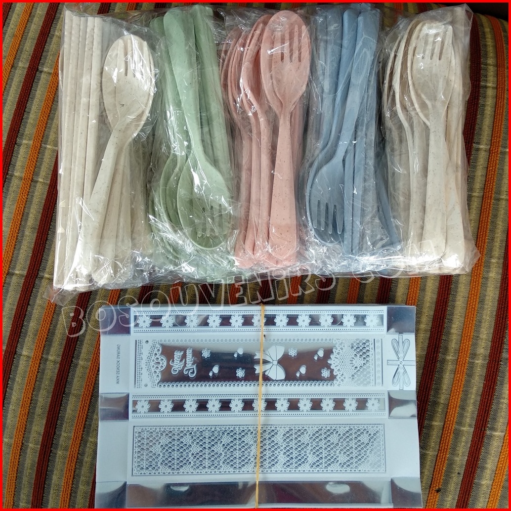 Isi 50 Set Souvenir Sendok Garpu Sumpit Travel Jerami Impor Mika Motif