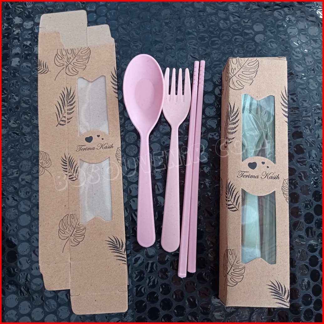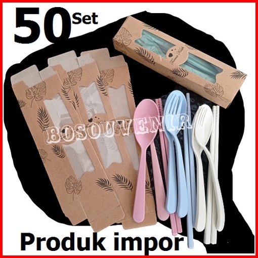Isi 50 Souvenir Pernikahan Sendok Garpu Sumpit Travel Jerami Impor Box Rustic