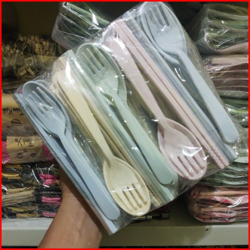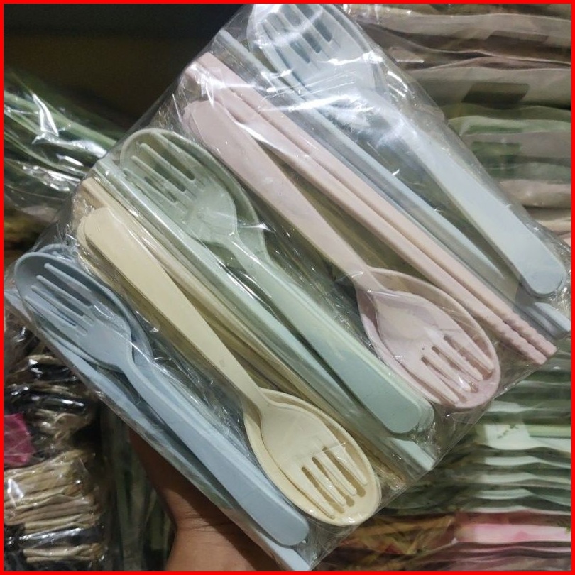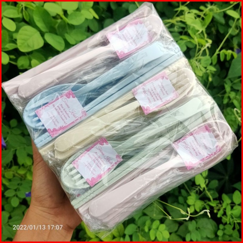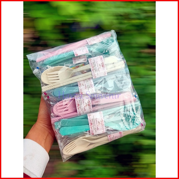 50 Set Souvenir Sendok Garpu Sumpit Lokal Kemasan Plastik