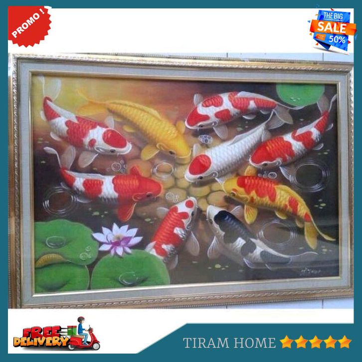 Lukisan Ikann 9 ekor 120 x 60 cm plus frame