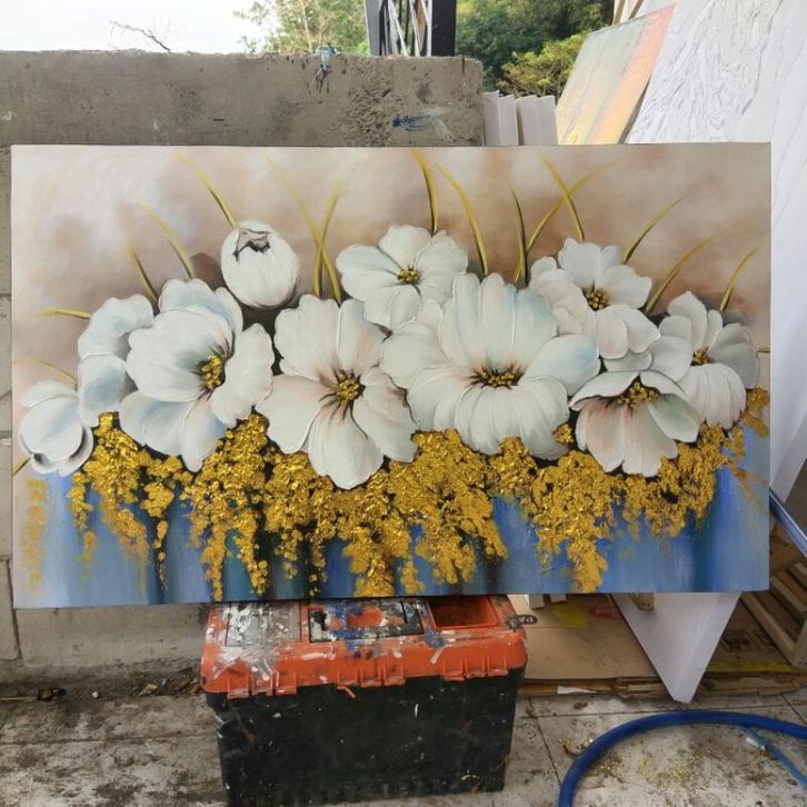 Lukisan bunga modern timbul dinding kamar tidur dekorasi 120 x 60 cm