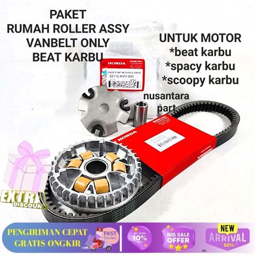 HEMAT PAKET 2ITEM KVY VANBELT BEAT KARBU+RUMAH ROLLER ASSY SET SCOOPY KARBU/ SPACY KARBU / VANBEL / FANBEL