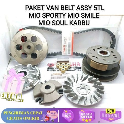 HEMAT PAKET CVT LENGKAP 5TL 4 ITEM MIO SPORTY/SMILE/SOUL KARBU (VANBELT+RUMAH ROLLER + KIPAS+ PULLY ASSY)