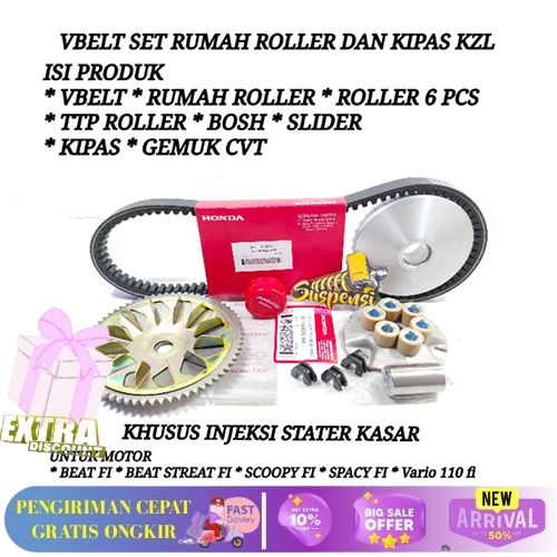 HEMAT PAKET RUMAH ROLLER SET KIPAS DAN VBELT BEAT FI SCOOPY FI VARIO 110 FI STATER KASAR KZL