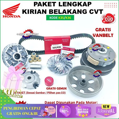 HEMAT PAKET CVT PULLY ASSY SET KIPAS RUMAH ROLLER VANBELT VARIO 125 150 LED ESP 2015 S/D 2023 K35 K36