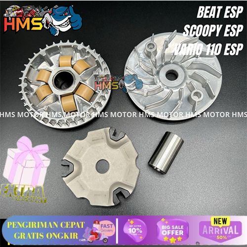 HEMAT RUMAH ROLER ROLLER ASSY SET + KIPAS CVT HONDA BEAT ESP SCOOPY ESP VARIO ESP 110 K44 STATER HALUS 1SET