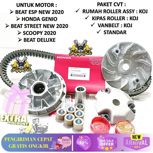 HEMAT PAKET CVT VANBELT + RUMAH ROLLER + KIPAS ROLLER ( KOJ ) GENIO / BEAT DELUXE / SCOOPY 2020 / BEAT STREET 2020